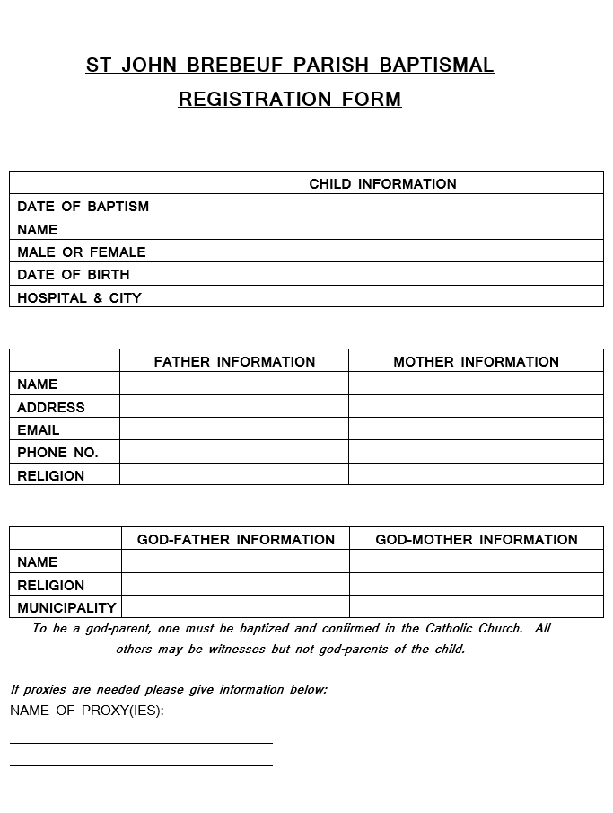 Please contact Deacon Cory Johnson for more information about having your child Baptized here at St John Brebeuf.